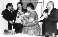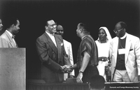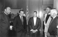 churchawakens465 The Rev. Canon Harold Lewis (second from right) and Presiding Bishop Edmond Browning (right) visit with Chicago Mayor Richard Daley (left center) and two local clergy, the Rev. Martini Shaw (left) and the Rev. Richard Tolliver (center), 1992.