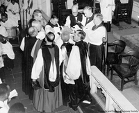 churchawakens171 Reverend John Logan stands with his sons, John Logan, Jr. (left) and Thomas Logan (right), at the Church of the Holy Apostles for the younger Logans' ordiantion to the diaconate, 1938.
