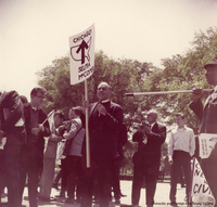 churchawakens416 Malcolm Boyd (holding sign) at the ESCRU demonstration in Chicago, Illinois, 1965.