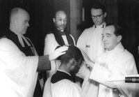 churchawakens469 Tollie Caution (center) looks on as Bishop Donegan ordains the young Walter Dennis, 1958.