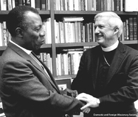 churchawakens501 The Rt. Rev. John Hines (right), Presiding Bishop of the Episcopal Church, with the Rt. Rev. Alphaeus H. Zulu (left), Bishop of Zululand in South Africa, during his visit to the United States, 1971. Bishop Zulu, one of the six presidents of the World Council of Churches, said, "I can't accept the theory that blacks and whites can't live together. If I did, I would cease believing in God."