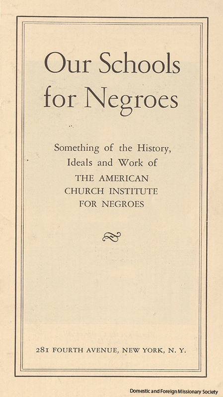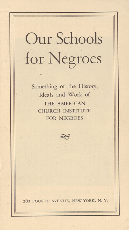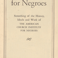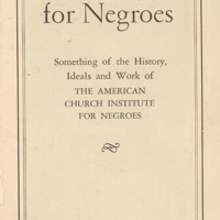 - Pamphlet produced by The American Church Institute for Negroes entitled, "Our Schools for Negroes," that provides a brief summary of the history, ideals, and work of the organization, undated.