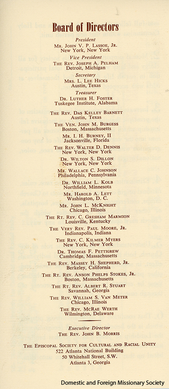 - Records of the Episcopal Society for Cultural and Racial Unity