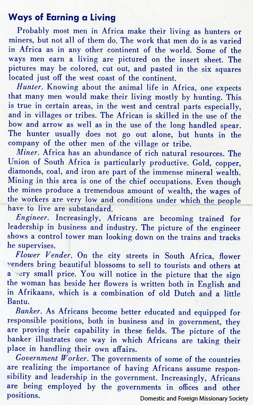 - ESCRU objected to the depiction of Africa and Africans in this pamphlet, calling it "patronizing" and "unreal."