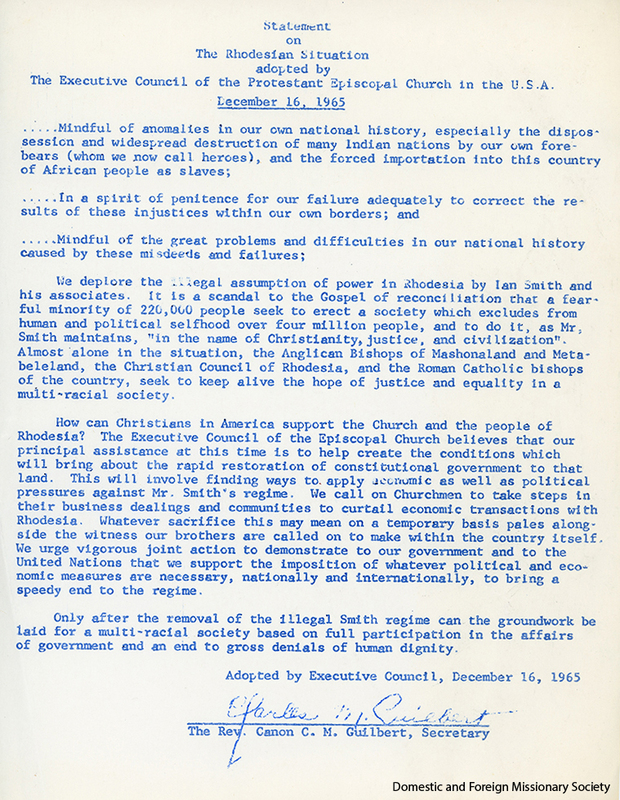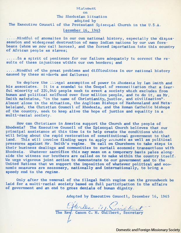 - In 1966, Executive Council adopted a resolution on investments in South Africa, June 1966.