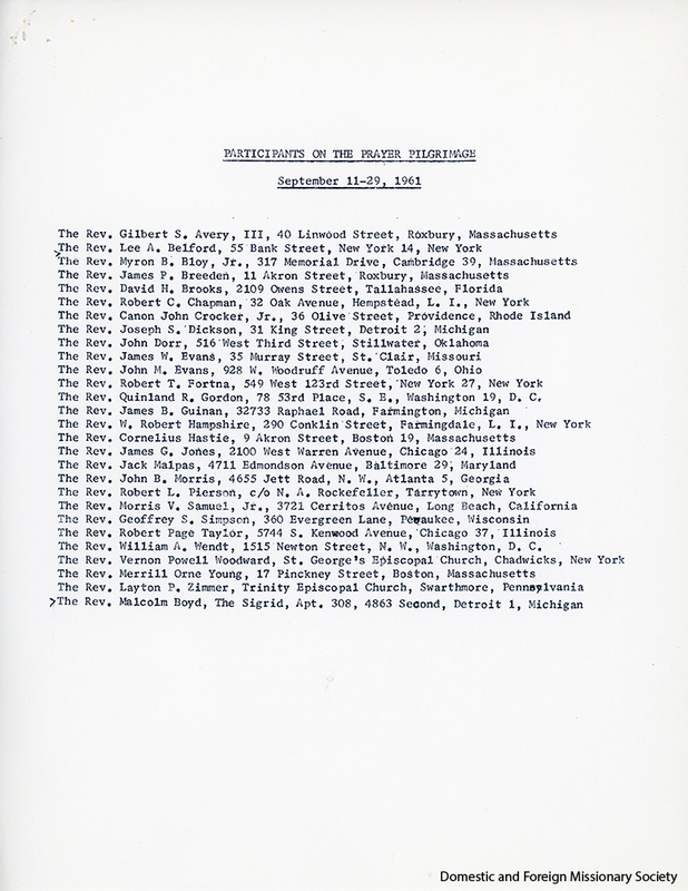 - List of participantsin Prayer Pilgrimage.