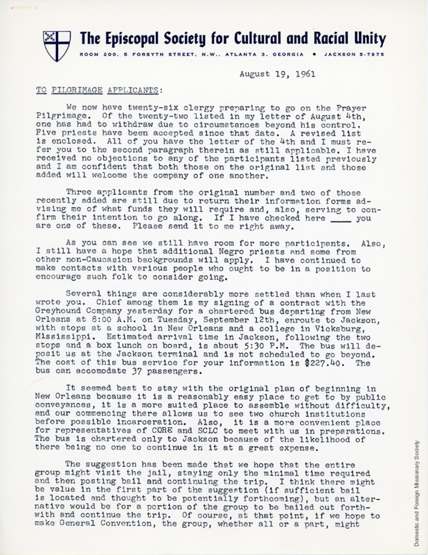 - Letter prior to Prayer Pilgrimage planning protest.