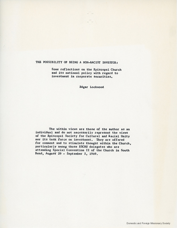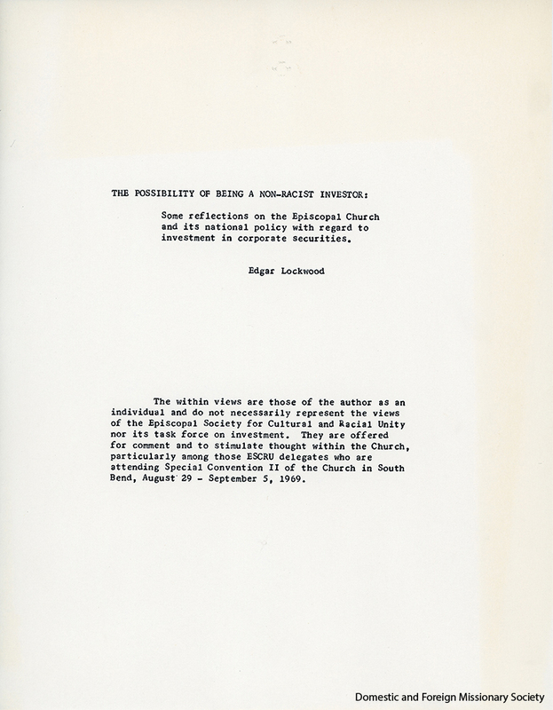 - Records of the Episcopal Society for Cultural and Racial Unity