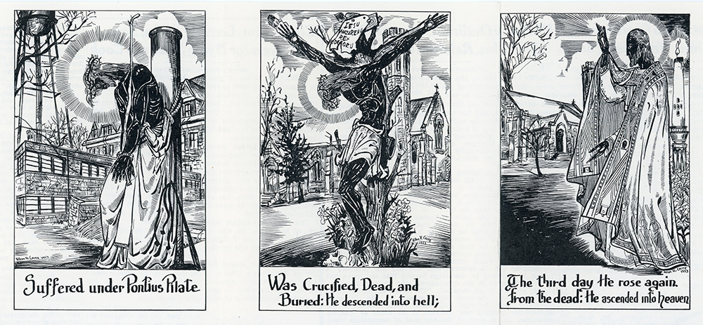 - Illustrations by African American artist and activist Allan Crite in response to discrimination he experienced while in Sewanee, c. 1952. The images were also used in ESCRU’s pamphlet on the 1961 Sewanee sit-ins.