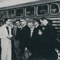 - Prayer Pilgrimage clergy gathered outside of their bus, 1961. Included among the 15 clergy arrested was Father Robert L. Pierson, the son-in-law of New York Governor Nelson Rockefeller.