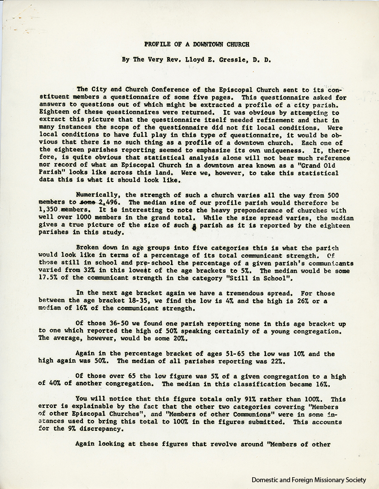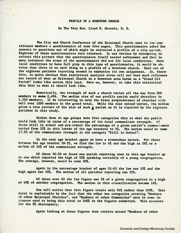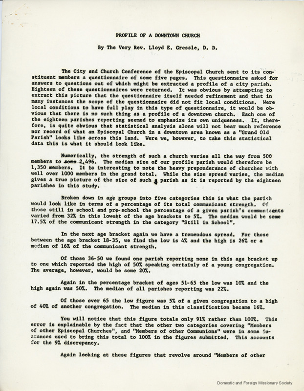 - "Profile of a Downtown Church", by Bishop Lloyd E. Gessle presented at the Conference on the City and the Church, January 8, 1963.