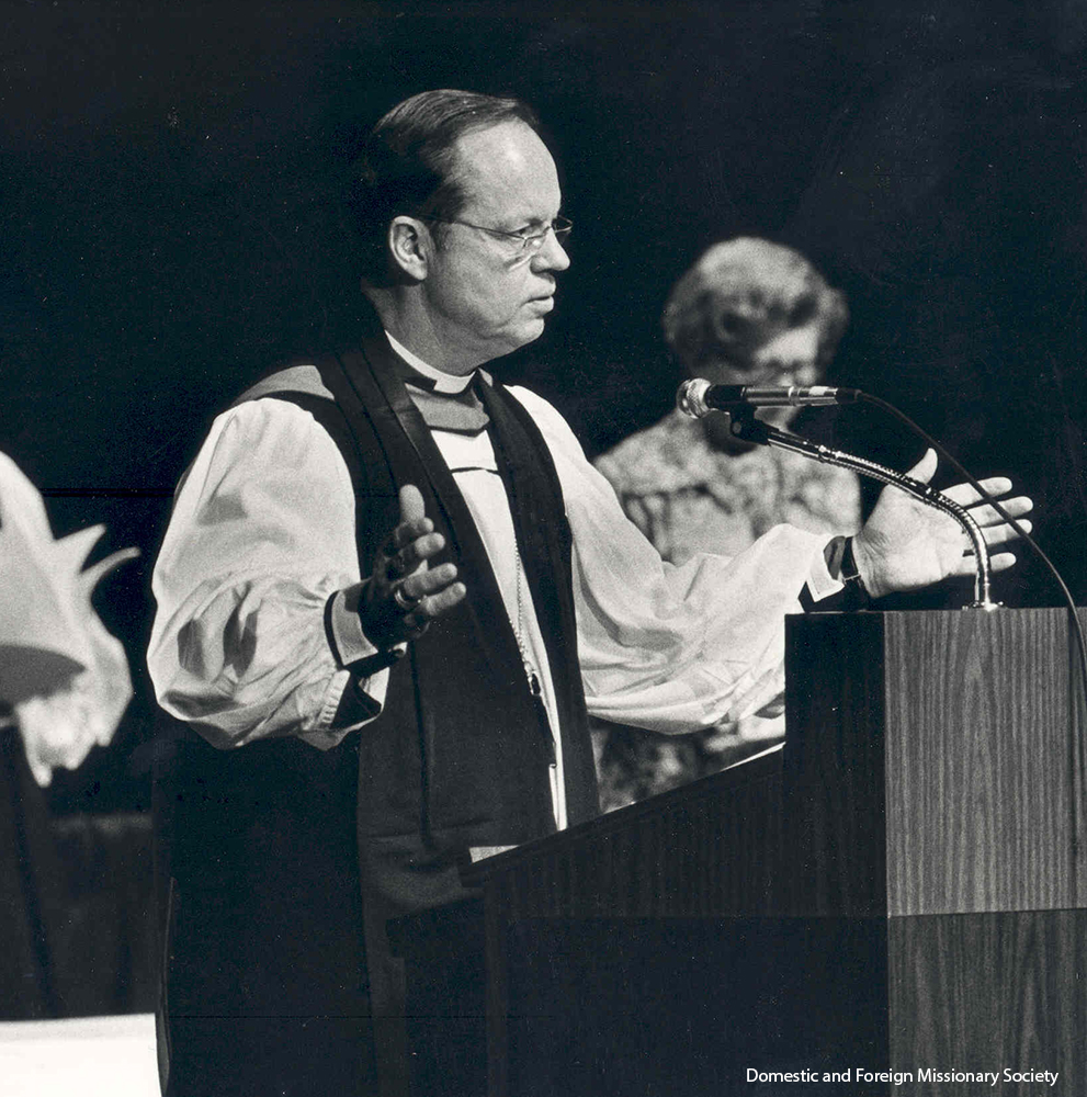 - Presiding Bishop John Allin speaking at the 1976 General Convention.