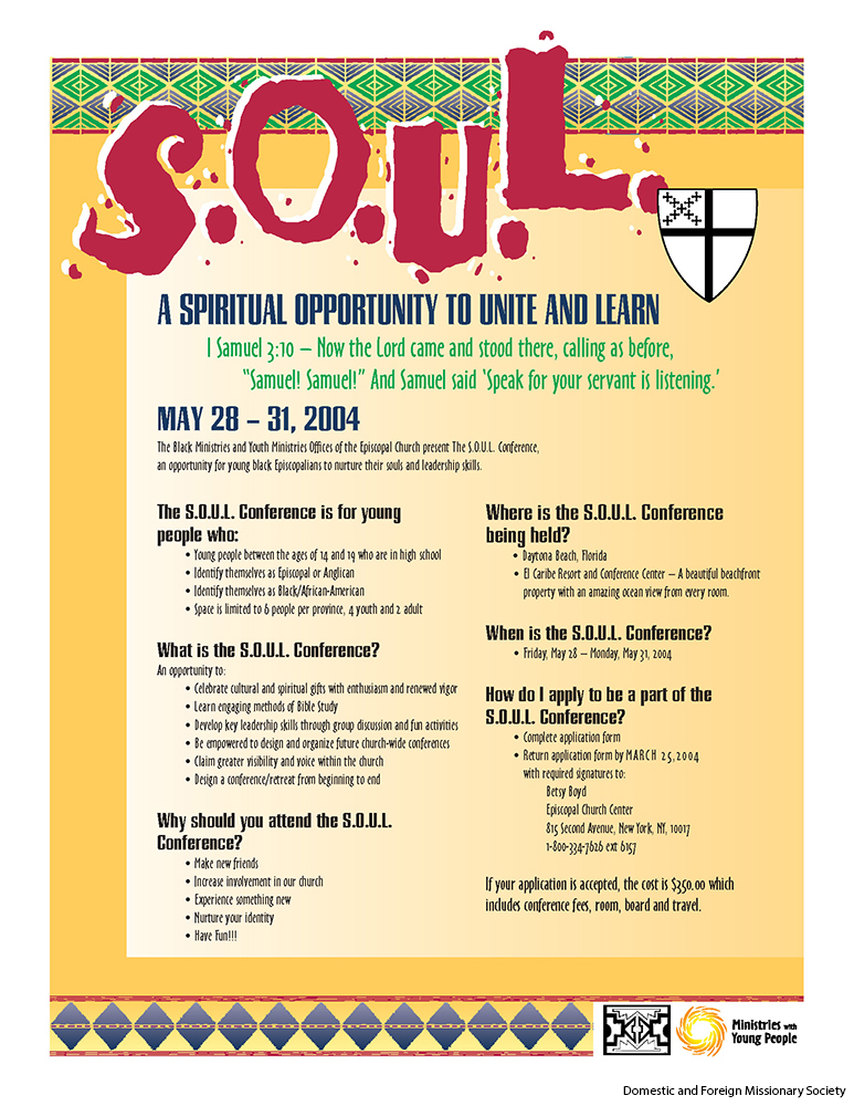 - Flyer from the S.O.U.L. Conference sponsored by the Black Ministries and Youth Ministries Offices of the Episcopal Church, 2004.