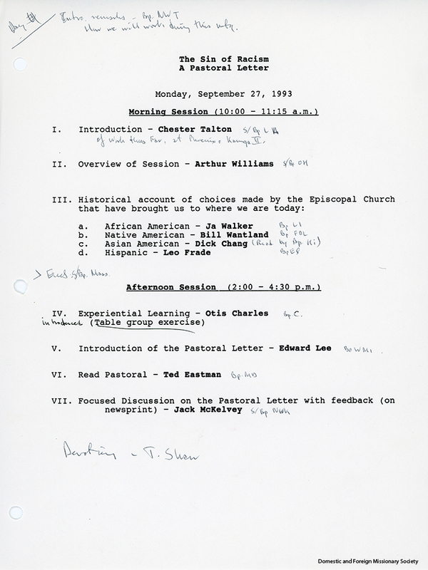 - This is the daily agenda from the pastoral letter planning session at the House of Bishops meeting in Panama, 1993.