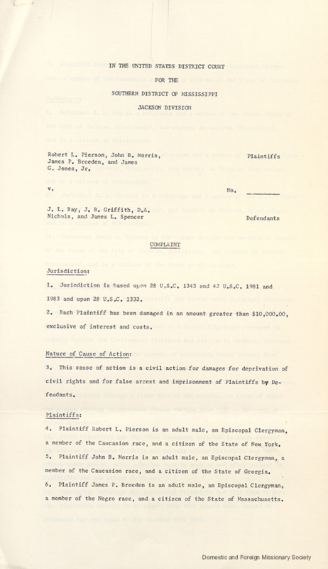 - The initial complaint filed in the Southern District of Mississippi in the case of Pierson v. Ray.