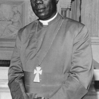 - Howard Quander (left) of the Committee on Human Development talks with Bishop George Daniel Browne of Liberia.
