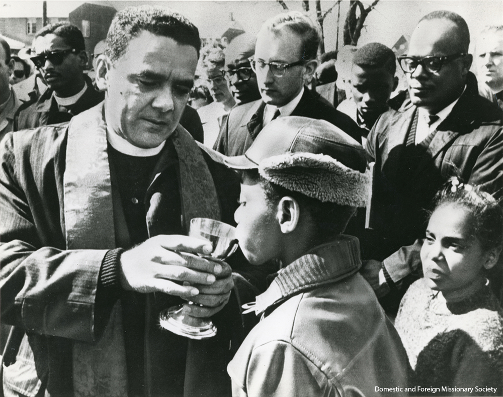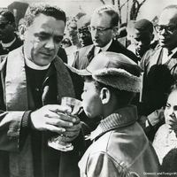 - Henri Stines, offers communion to a boy in Selma, Alabama, undated.