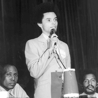 - Byron Rushing (center) with Leon Page (left), spokesperson for the United Front, and an unidentified man (right) at the 63rd General Convention in Houston, Texas, 1970.