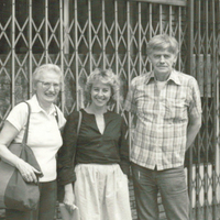 - Johnston in New York with Betsy Landis, Vice-President of the American Committee on Africa, and Namibian reporter Gwen Lister, c. 1984.