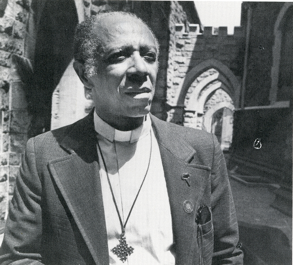 - Father Paul Washington in the courtyard of the Church of the Advocate, June, 1980.