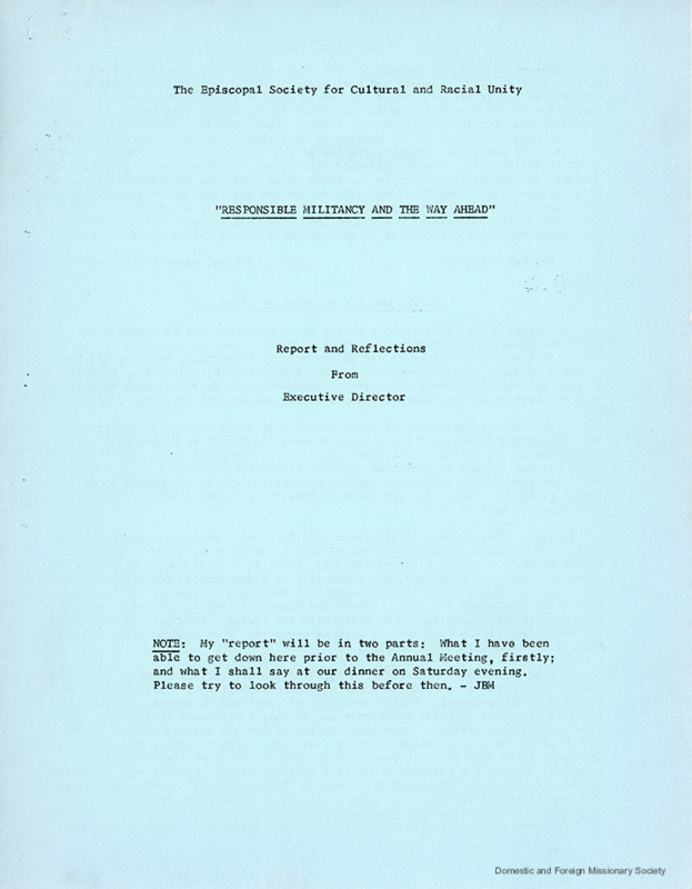 The beginning of Black Power was the beginning of the end for the Episcopal Society of Cultural and Racial Unity (ESCRU). John Morris, the organization’s white leader, and its largely white membership, struggled with the more radical position of the Black Power movement as compared to the Civil Rights Movement of Dr. Martin Luther King, Jr.; meanwhile, Black members questioned if ESCRU could advocate for their interests. At the same time, the organization struggled to find funding and focus: Should it put its efforts towards the Southern or Northern cities? Should it seeks ways to influence change in the church or in the secular world?