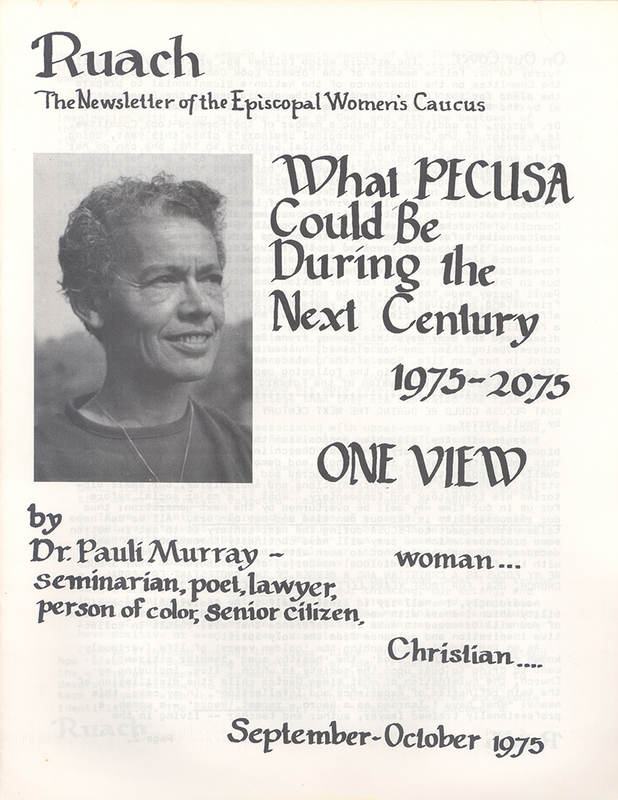 As a young adult Murray changed her birth name to “Pauli.” According to the Pauli Murray Center, Murray questioned her gender identity and sought gender-affirming care in the 1930s, which doctors denied to her. At different times and in different writings, she identified as a “he/she personality,” a heterosexual man, and a woman. Scholars do not know how she would have identified herself in the current language around gender identity. Although it is possible her gender identification as a woman was a result of the dangerous and discriminatory attitudes towards LGBTQ+ people in America, the Archives has chosen to use she/her pronouns to reflect those she used publicly while working for The Episcopal Church.