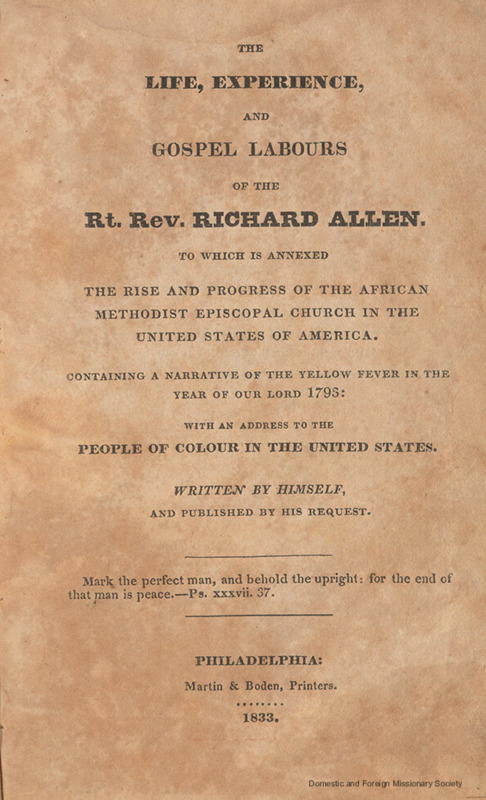 While the Free African Society adopted Quaker practices, Allen remained a staunch Methodist. In 1789, Allen, along with others who preferred more traditional Methodist practices, withdrew from the society. Allen founded Bethel in 1794, an independent Black Methodist church, which became known as the “Mother” church of the African Methodist Episcopal Church. Ordained a deacon in 1799, Allen was consecrated the first bishop of the new denomination in 1816. Richard Allen remained an ardent activist on behalf of the Black community until his death in 1831.
