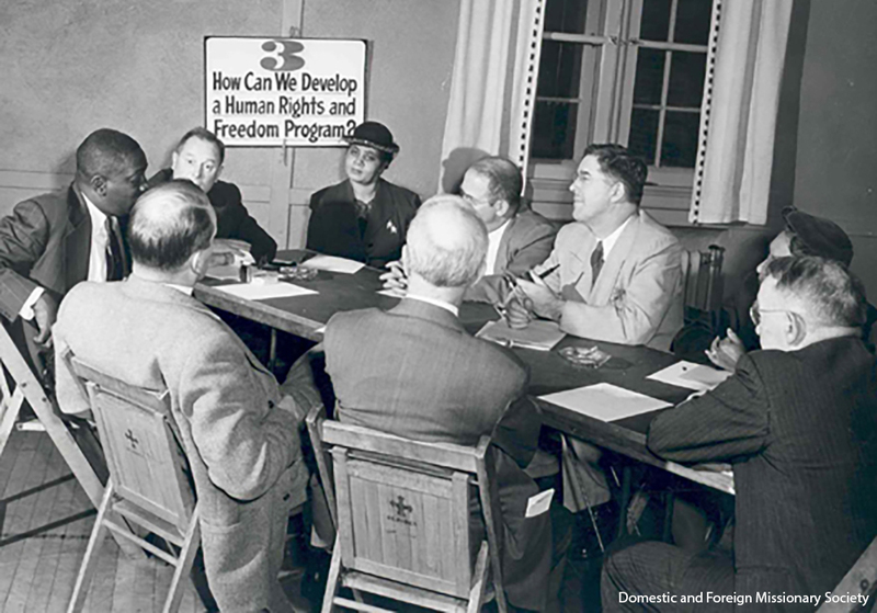 In an effort to understand how Episcopalians viewed the world, and their place in it, the National Council’s Department of Christian Social Relations undertook a significant study of social education and community action in The Episcopal Church from 1949 to 1951. Its subsequent report, Episcopalians at Work in the World, included a survey of members’ views on a variety of topics, both religious and secular. With respect to equality in the church, the department found that 27% of the laity, 13% of the priests, and 8% of the bishops believed the church should be segregated.