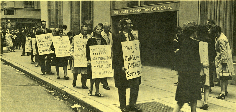 Executive Council began passing resolutions in 1968 narrowing the criteria for investments in companies and banks doing business in the region, and appointed an ad hoc committee in 1969 to examine the feasibility of utilizing ethical criteria to drive investments in companies doing business there. In 1970, the General Convention created a more permanent group to examine and address the church’s concerns that their investments be aligned with their moral obligations as a religious institution. The newly formed Executive Council Committee on Social Criteria for Investments, broadened the initial debate about investing in South African companies to consider the ethical implications of corporate investments in any country whose politics and structure were governed based on color.
