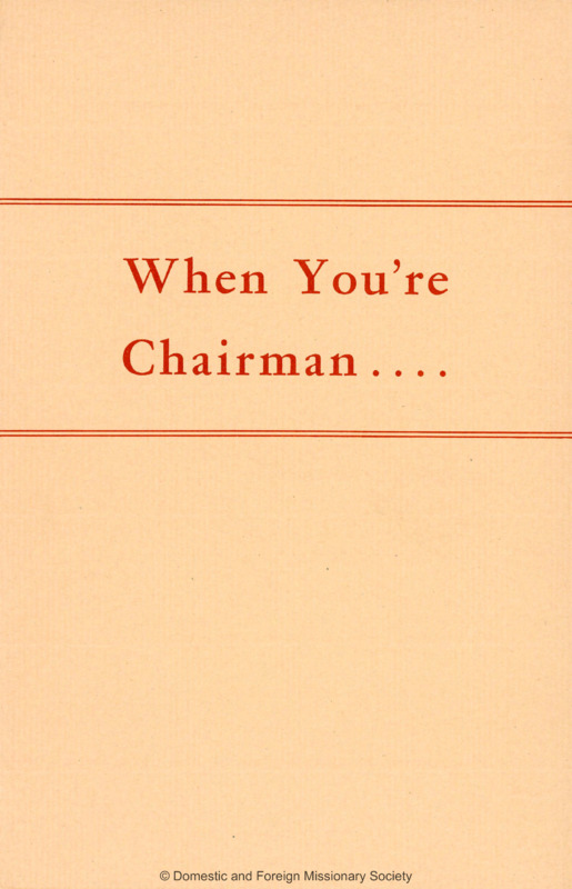 - When You're Chairman…, a Woman's Auxiliary guide on running an organization, undated.